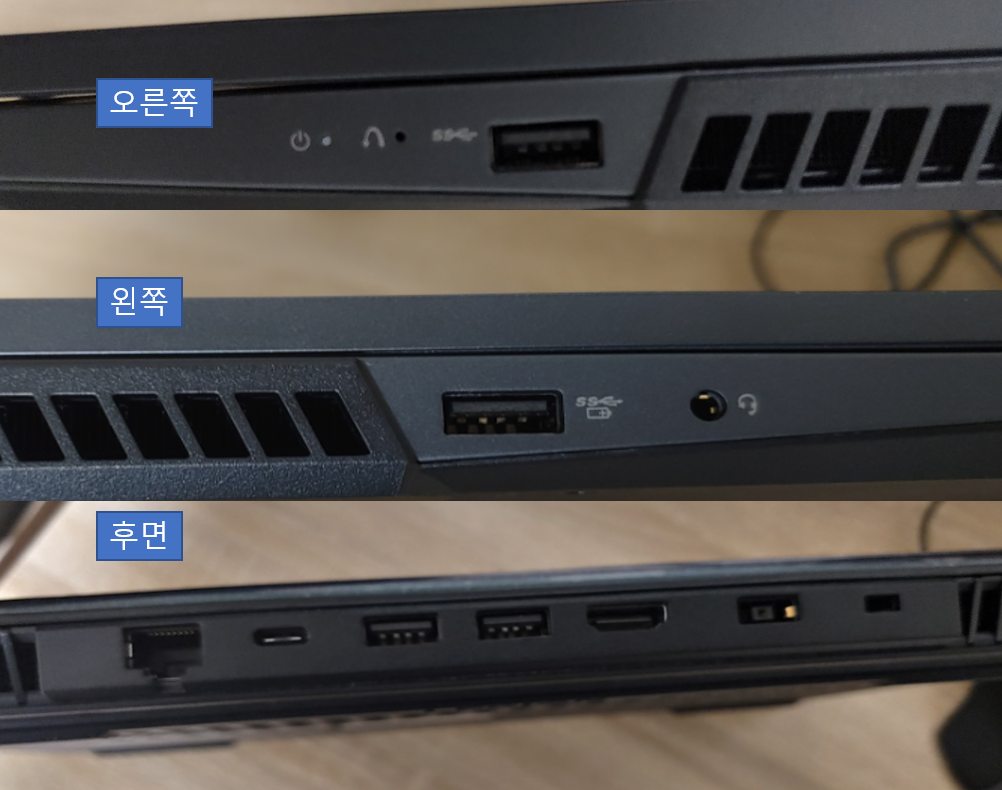 후면에 단자를 배치되어 있는 노트북은 처음 써보는데,