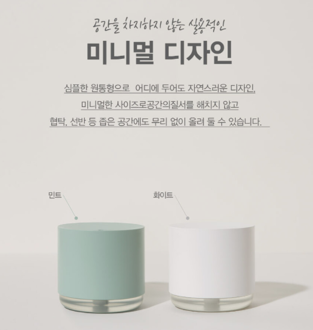 작은 바디에서 강력하게 뿜어져 나오는 부드러운 입자의 안개 가습으로