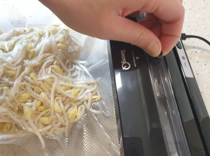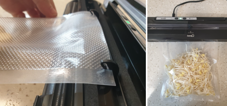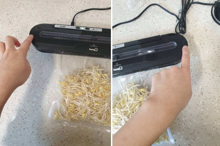 실링 비닐을 연결하고 VacSeal 버튼을 누르고