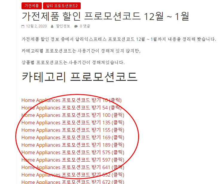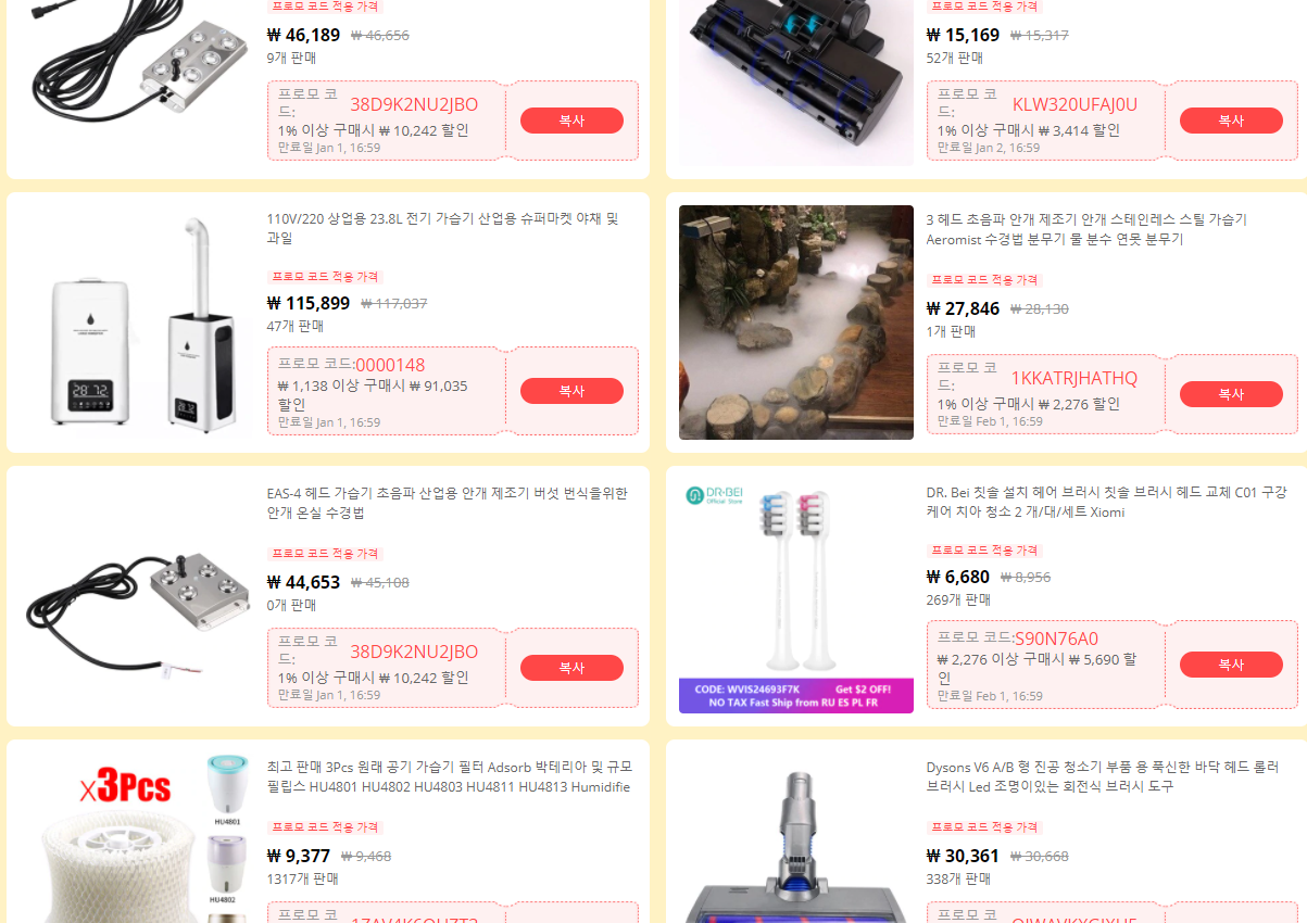 가전제품 할인 정보 중에서 알리익스프레스 프로모션코드 12월 ~ 1월까지 내용을 정리해 봤습니다. 카테고리별 프로모션코드는 사용기간이 정해져 있지 않지만, 상품별 프로모션코드는