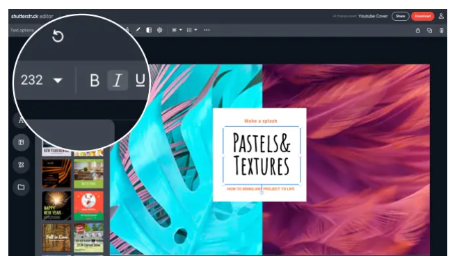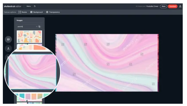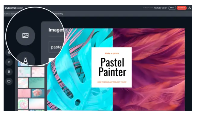 툴바 상단의 검색 아이콘을 사용하여 Shutterstock 라이브러리를 탐색하세요. 완벽한 이미지를 찾을 때까지 다양한 검색어를 사용해보세요.