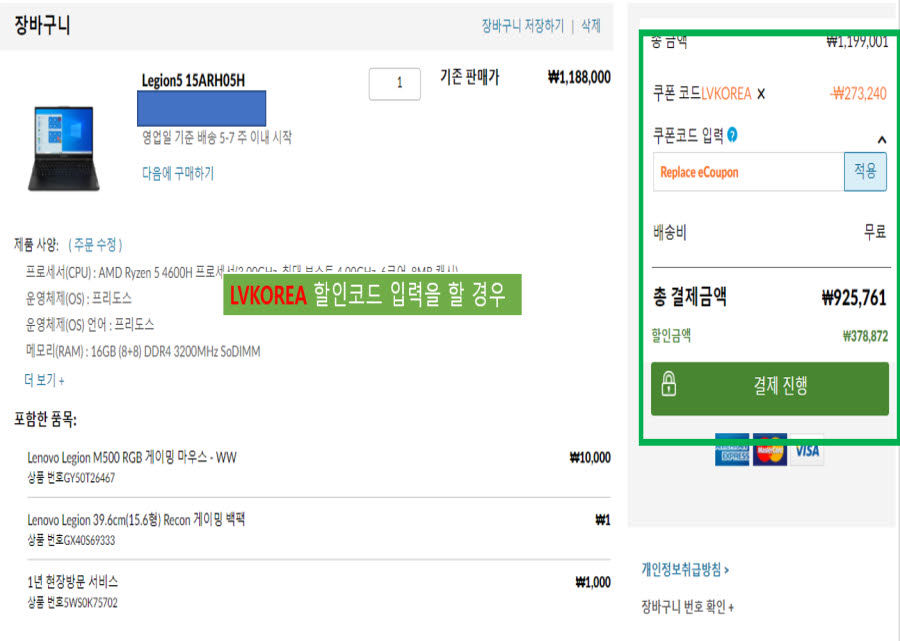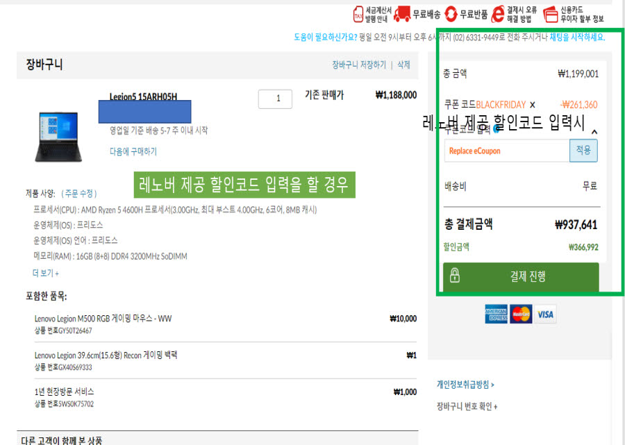 다시한번 느끼지만, 레노버에서 제공하는 할인코드 보다 블로그에서 제공하는 할인코드가