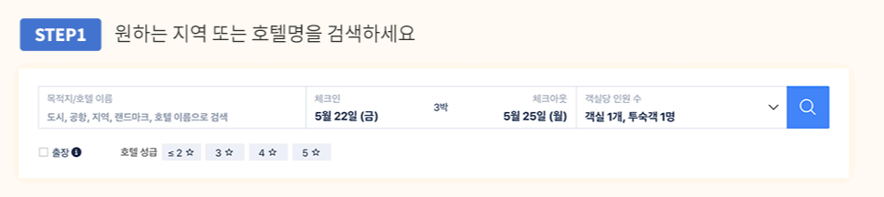 원하는 지역이나 호텔, 콘도, 리조트 등의 이름으로 검색을 할 수가 있어요.