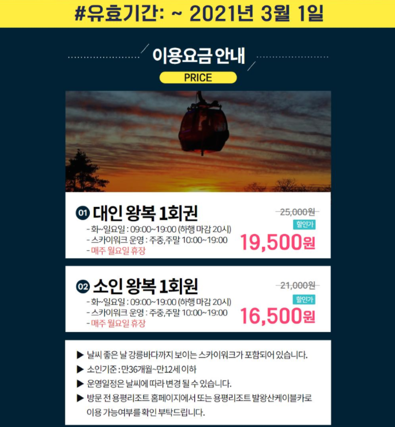 평창 용평리조트 발왕산 케이블카 탑승권 & 스카이워크 이용권