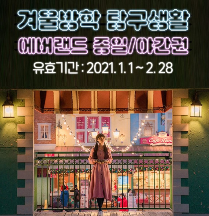 용인 에버랜드 겨울방학 탐구생활 종일/야간이용권 (21/1/1~21/2/28 / 예약 후 3천원 쿠폰 즉시 지급)