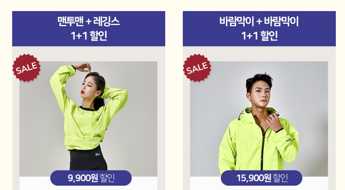 바람막이 + 바람막이로 1+1을 할수가 있어요.