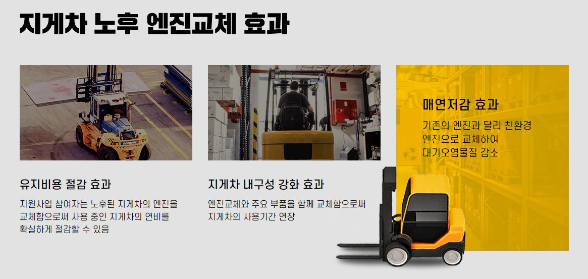 노후된 지게차 엔진을 친환경 엔진으로 무료교체 해드리는 사업을