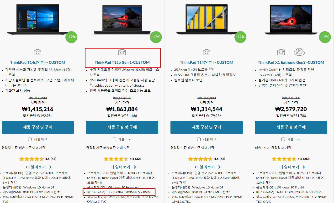 커스텀 모델 중 싱크패드 ThinkPad T15p Gen 1 -CUSOTM을