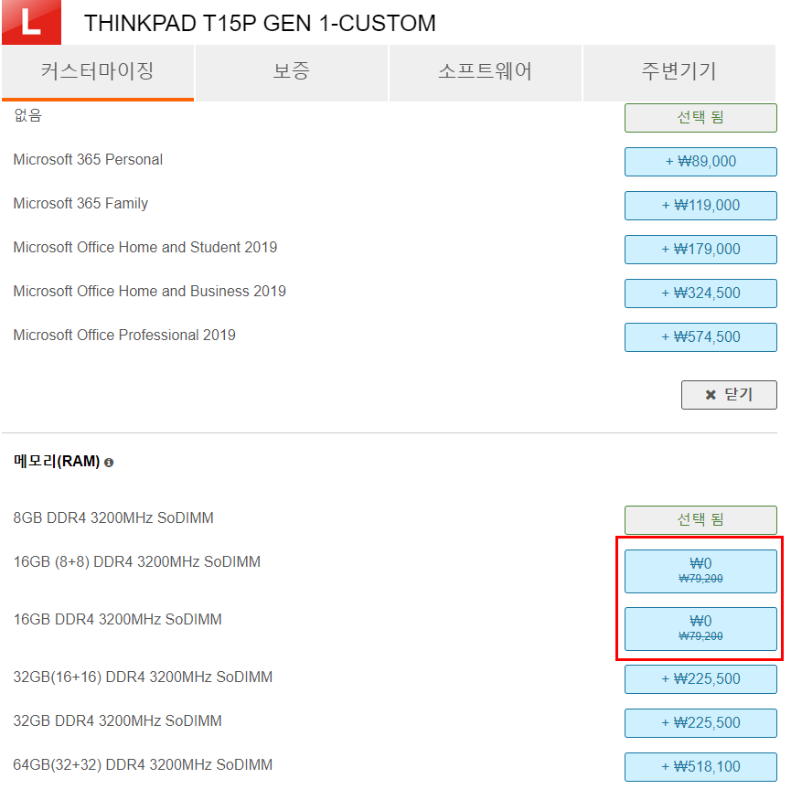 이번에 구입하실 경우 램은 무료로 업그레이드를 해주는 행사에요.