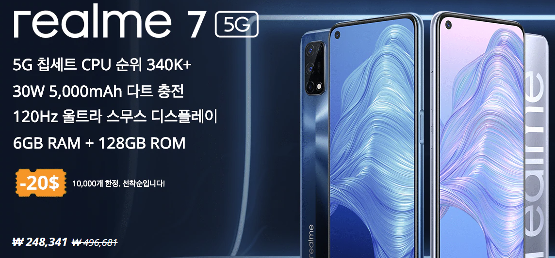 알리익스프레스 프로모션코드 가성비 스마트폰 realme 7 리얼미 행사 쿠폰 포스팅은 제휴마케팅이 포함되어 있습니다.