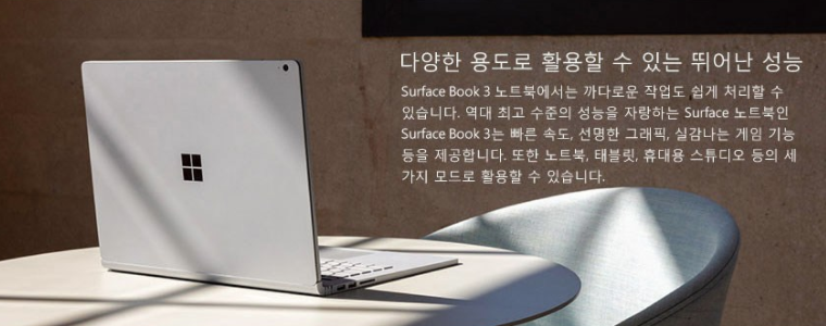 서피스 북3 노트북에서는 수준 높은 성능을 자랑하는