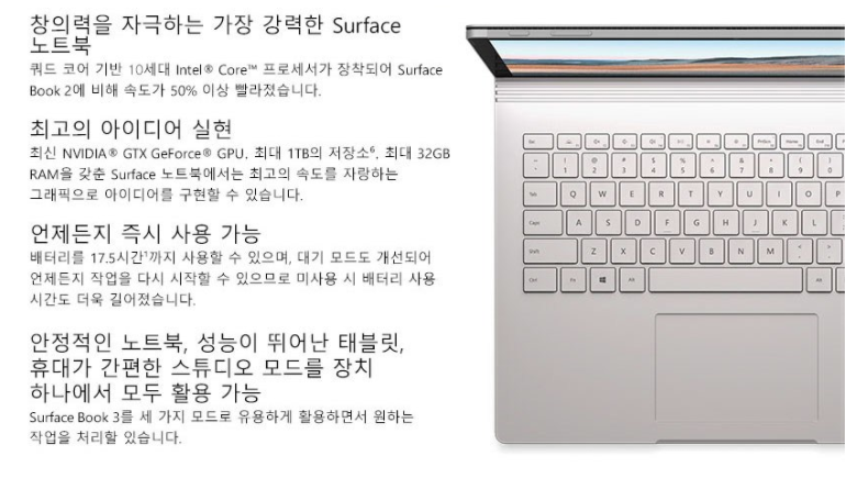 가장 고사양인 Surface Book3에 대한 설명이에요.