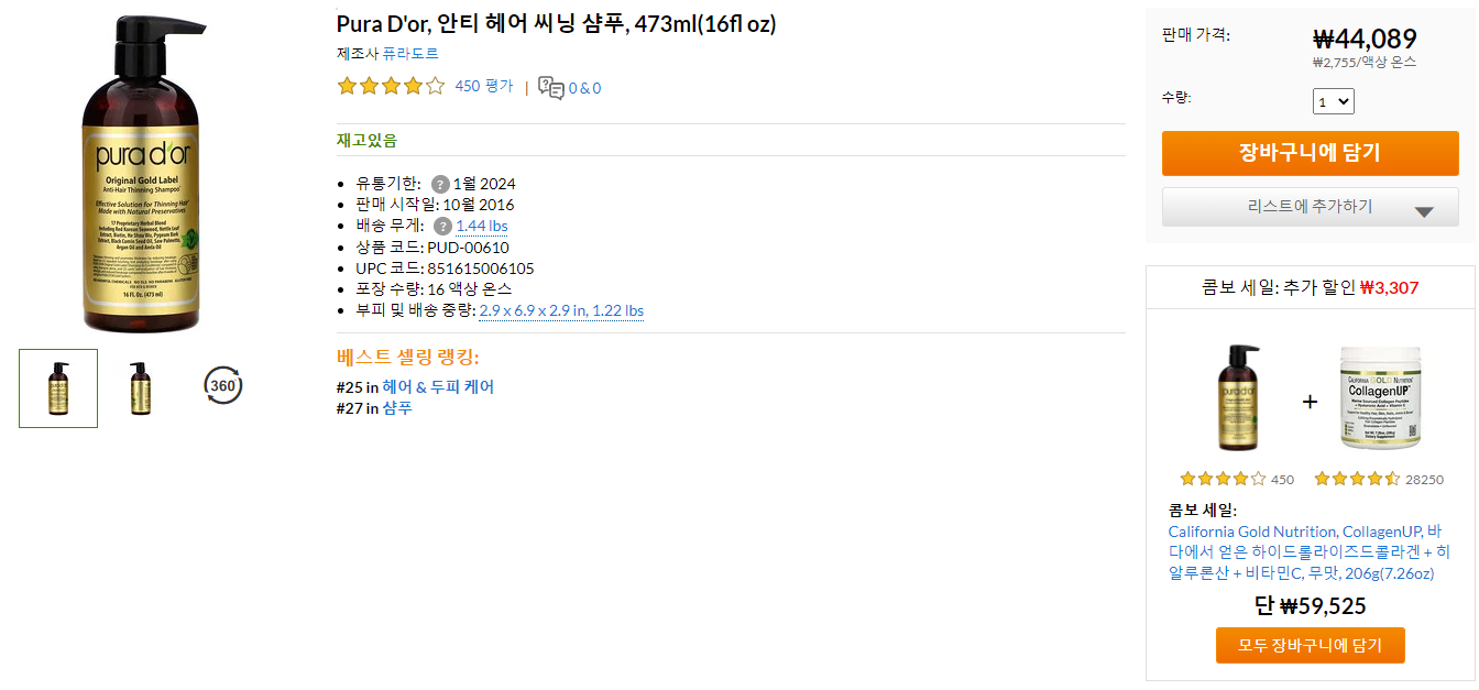 그래서 가느다른 모발을 위한 샴푸를 추가로 장바구니에 넣고