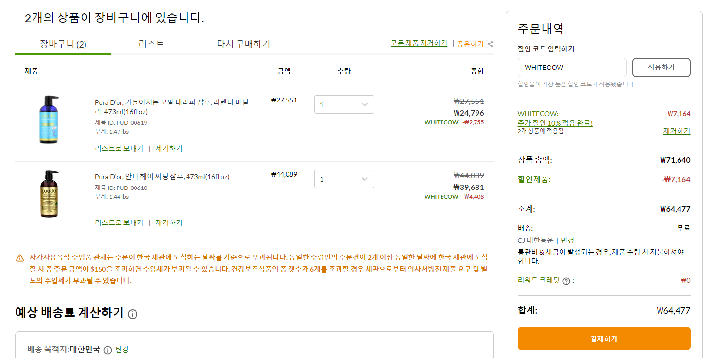 제가 자주 구매하는 탐모샴푸인 Purador 퓨라도르로 할인코드 사용하는 방법을