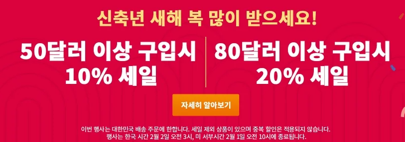$50 이상 구입 시 10% 세일 / $80 이상 구입 시 20%