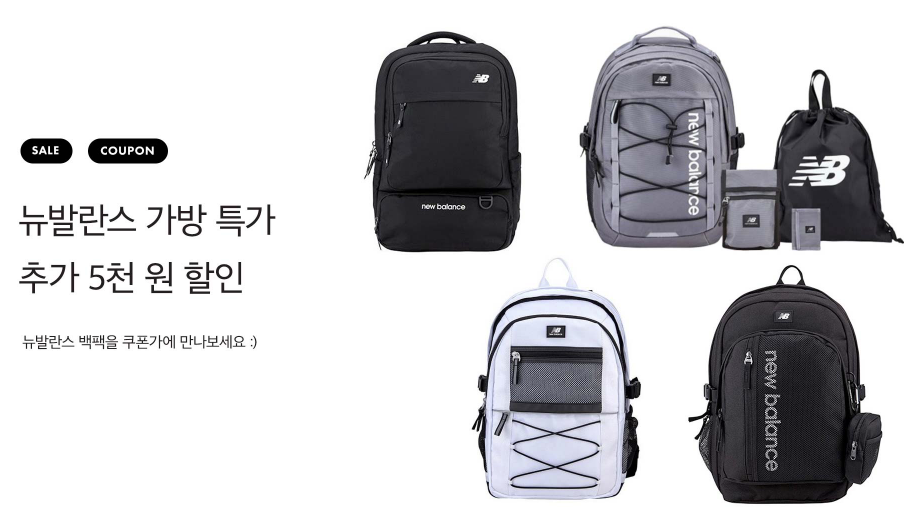 그럼 이상으로 2021년 2월 crewbi 크루비 전제상품 할인코드 + 15000원 쿠폰, 뉴발란스 백팩 특가 포스팅을 마치겠습니다.
