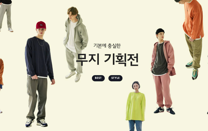 잘 어울리는 무지 패션 아이템 기획전이에요.