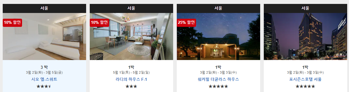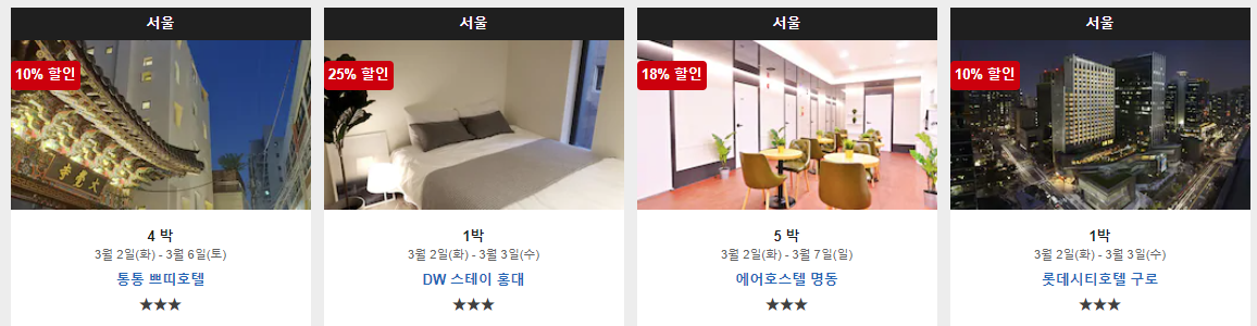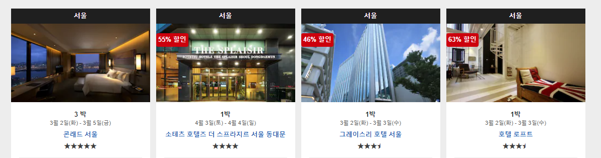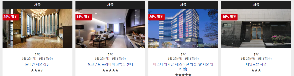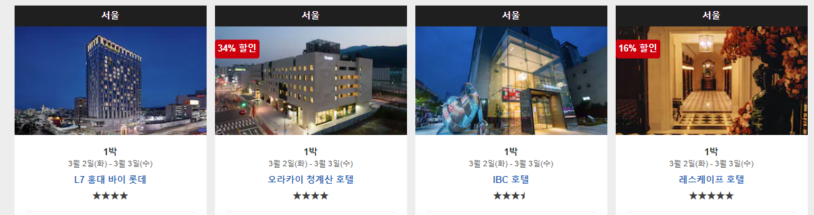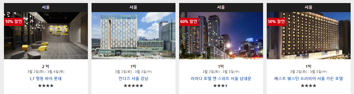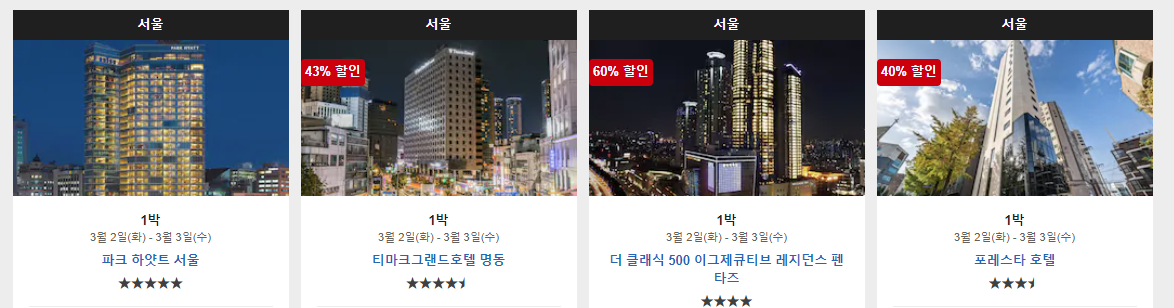 캡쳐한 이미지는 전부 서울의 호텔이지만,
