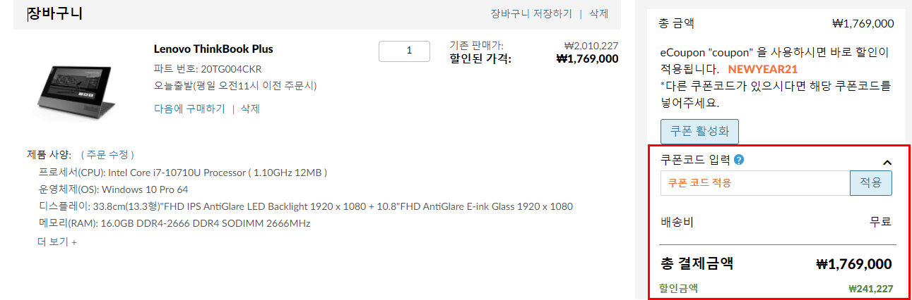 꼭 쿠폰코드 입력이라고 되어 있는 부분에