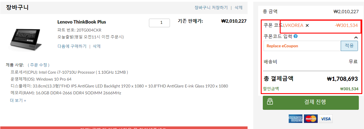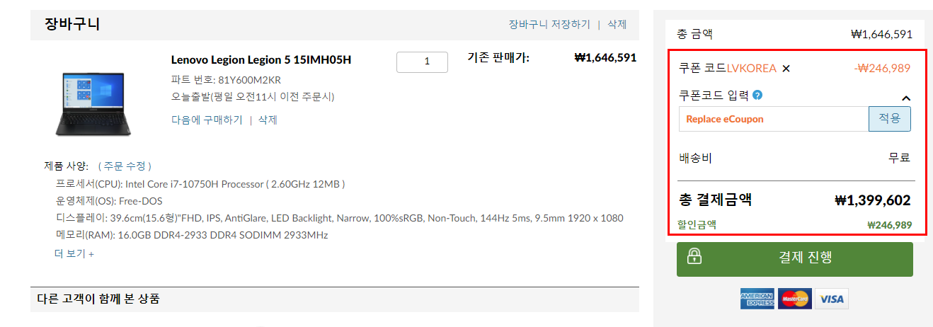 LVKOREA를 적용하니 301,534원 할인을 받을 수가 있어요.