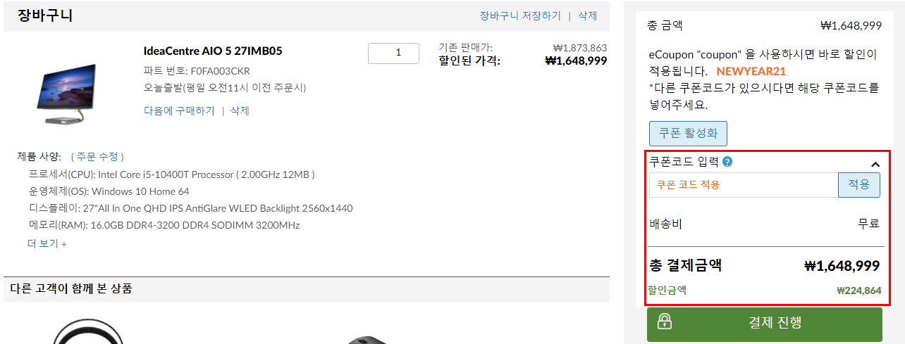 레노버에서 제공하는 쿠폰코드 보다