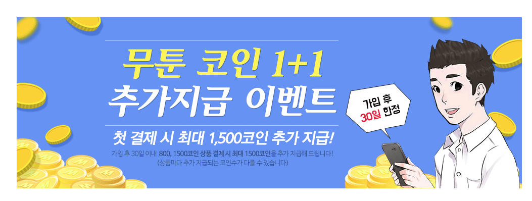 가입후 30일이내에만 코인을 충전하면 1+1 으로