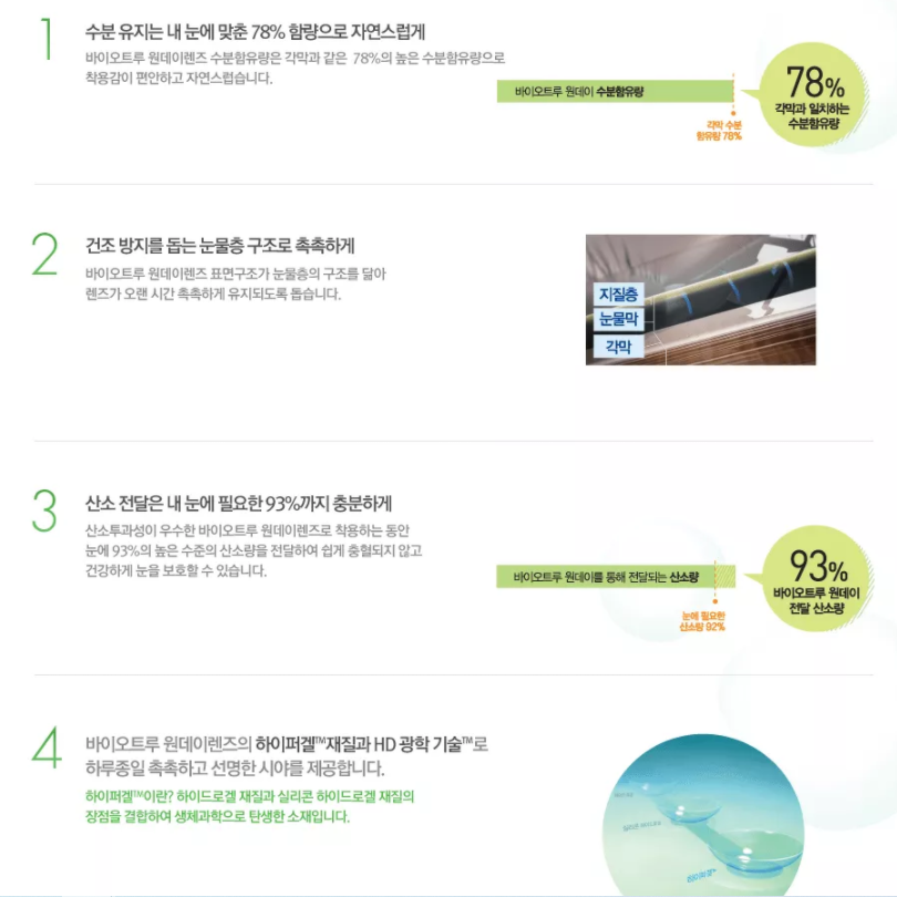 제품 설명: 16시간 동안 촉촉하고 편안한 바이오트루 원데이렌즈