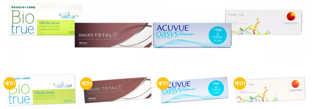 아큐브, 바슈롬 등 해외 브랜드 일회용렌즈 직구사이트로