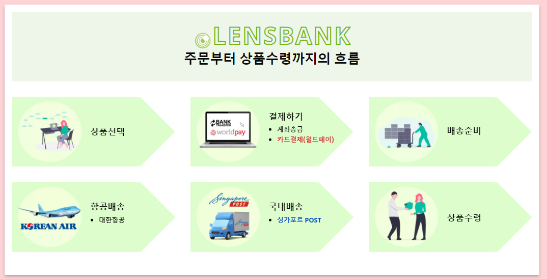 렌즈뱅크에서는 ‘싱가포르 POST’ 택배사를 통해 고객님께 빠르고 안전하게 배송하고 있습니다.