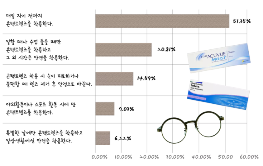 그래서인지 콘택트렌즈를 착용하시는 분들은 하루종일 착용하시는 분들이 대부분입니다.