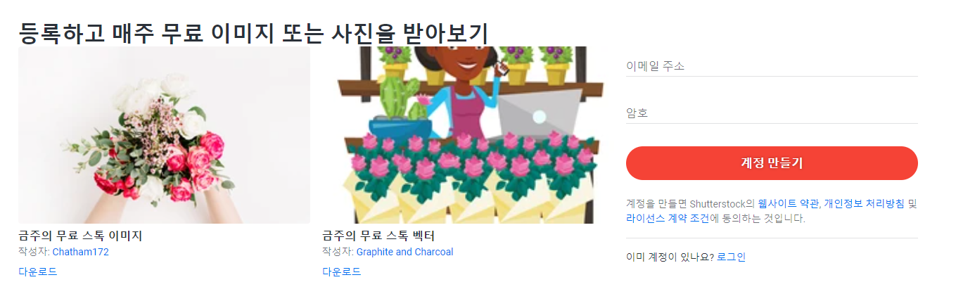 클릭하면 셔터스톡의 이미지를 검색할 수가 있어요.