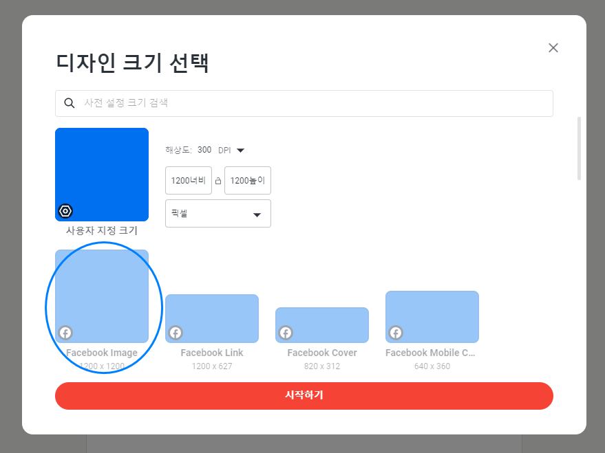 디자인 크기를 먼저 정할 수가 있어요.