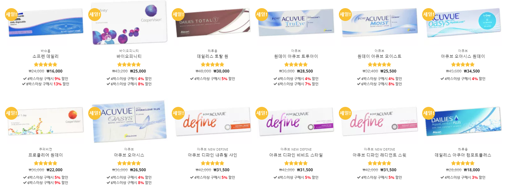 렌즈 직구 사이트 렌즈뱅크는 편리한 주문과 저렴한 가격, 최단 3일내 배송. 원데이 아큐브 디파인 바슈롬 알콘 일회용렌즈 원데이렌즈 최저가!