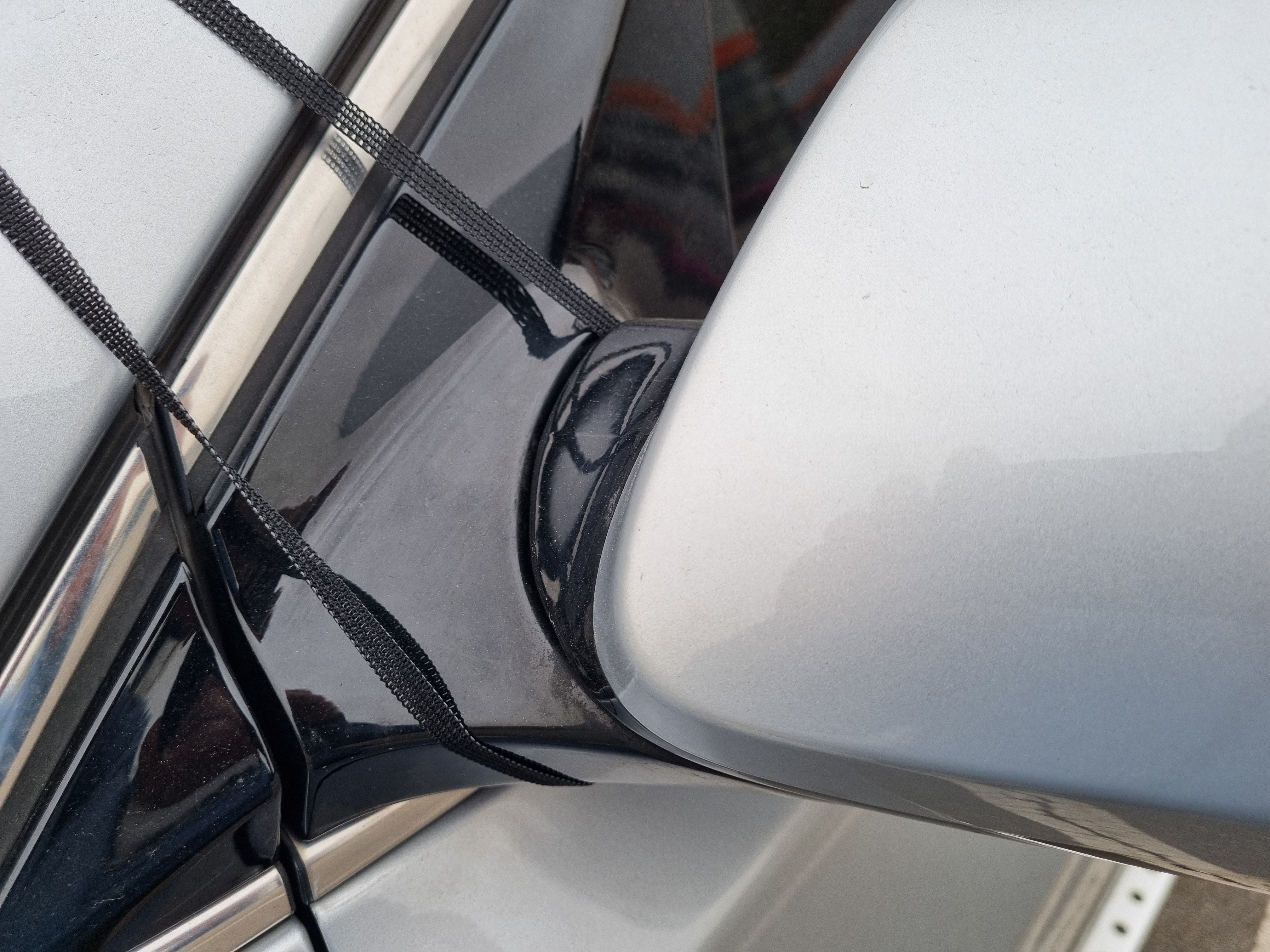 고리 한쪽은 사이드미러에 걸고,