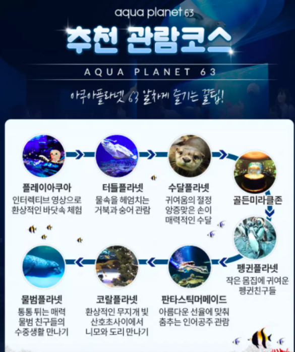 신비롭고 재미있는 풍경이 펼쳐지는 아쿠아플라넷 63을 방문해보세요!