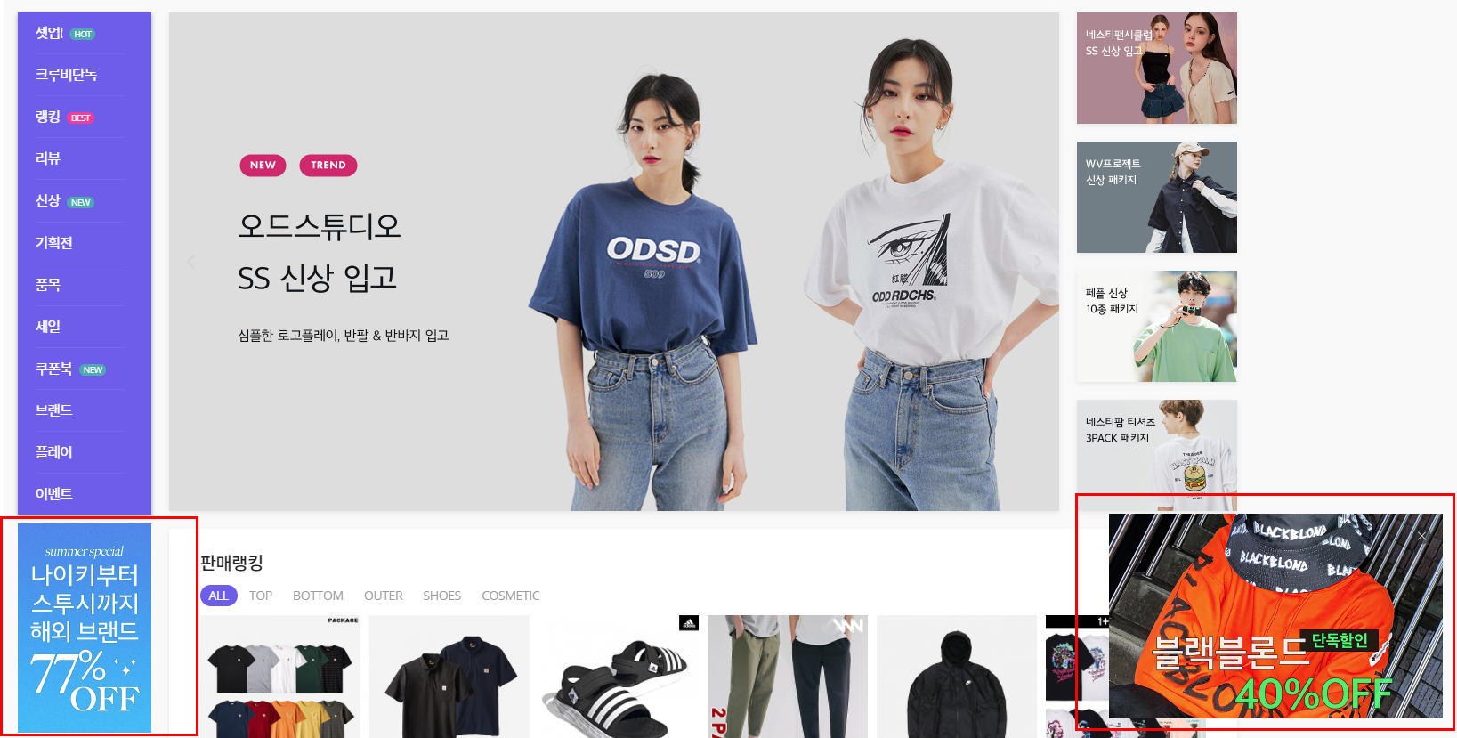 왼쪽에 나이키부터 스투시까지 해외브랜드 77% OFF라는 이미지가 보일거에요.