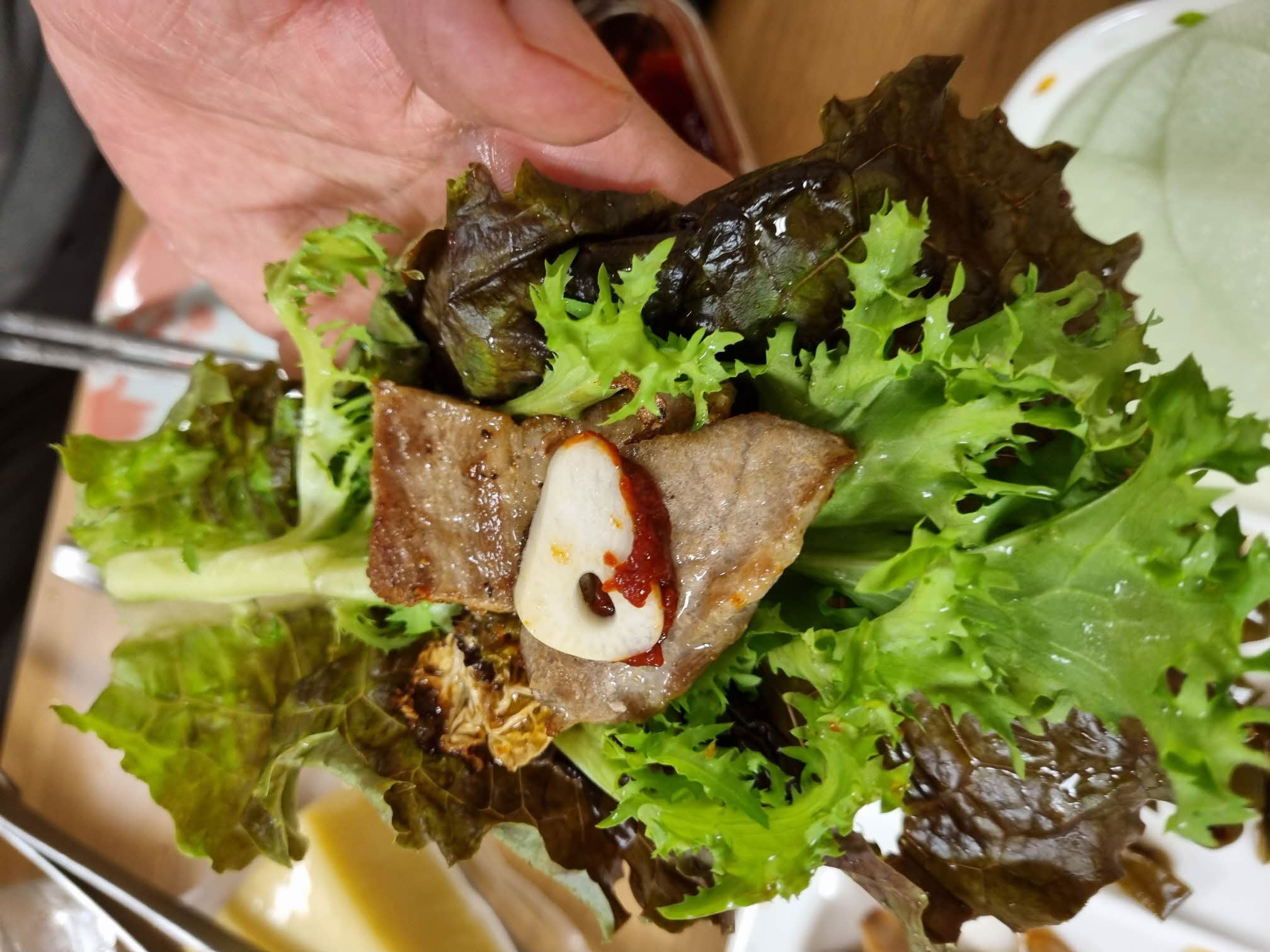 돼지기름에 구워진 김치 사진이 저것뿐이네요.