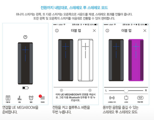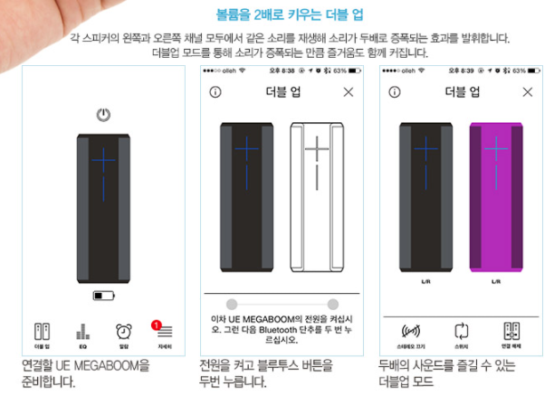 UE전용앱을 통해 UE스피커를 추가로 결합하여 두대의 스피커를 동시에 사용할 수 있는
