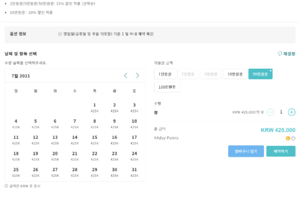 50만원권과 100만원권은 15% 할인된 가격에 구매 할 수 있습니다.