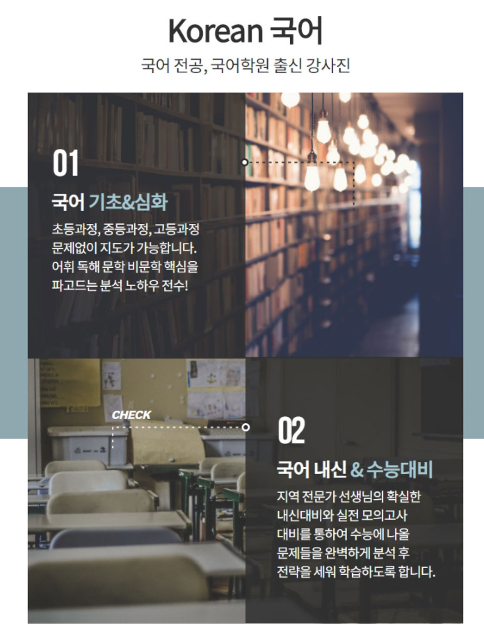 각 과목별 전문 선생님이 직접 수업진행하고 있습니다.