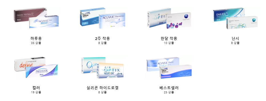 용도별로도 구분을 하기 때문에 자신에게 맞는 콘택트렌즈를 찾기가 쉽더라구요.