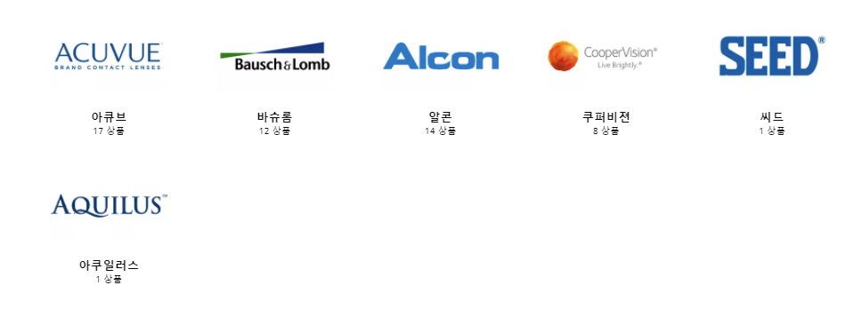 #아큐브, #바슈룸, #알콘, #쿠퍼비전, #씨드, #아쿠일러스 등 다양한 브랜드의 콘택트렌즈를
