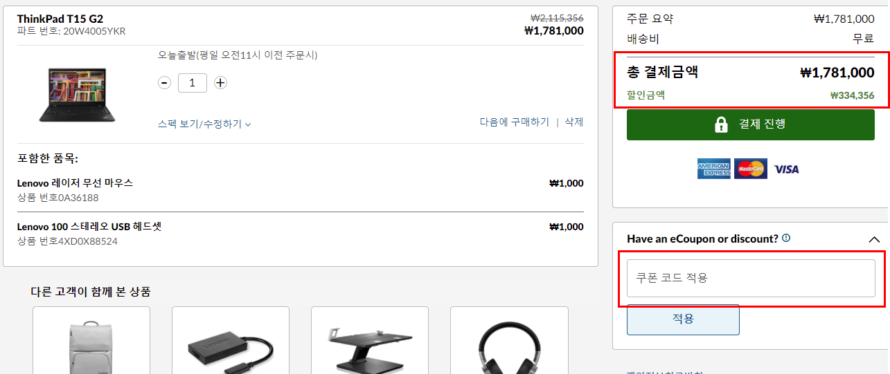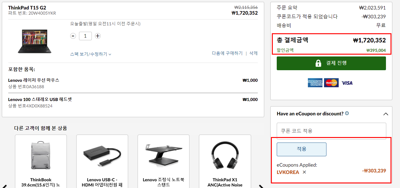 ThinkPad는 상품리스트의 금액보다 더 큰 할인이 이루어졌는데,
