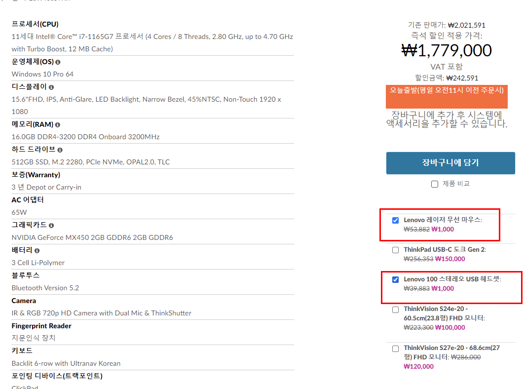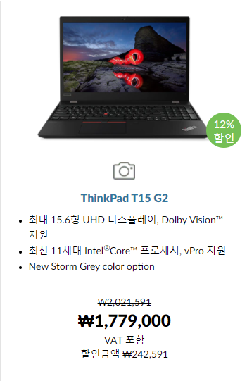 즉 방콕족을 위한 핫딜에서 ThinkPad T15 G2를 구매한다고