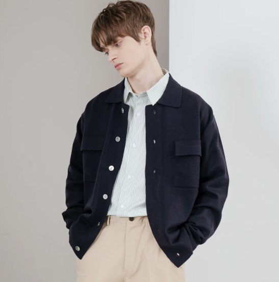 유니섹스 카라 포켓 가디건 네이비