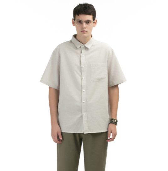 스트라이프 린넨 하프 셔츠 베이지