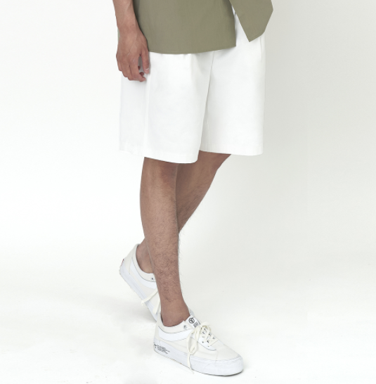와이드 원턱 밴딩 쇼츠 반바지 아이보리