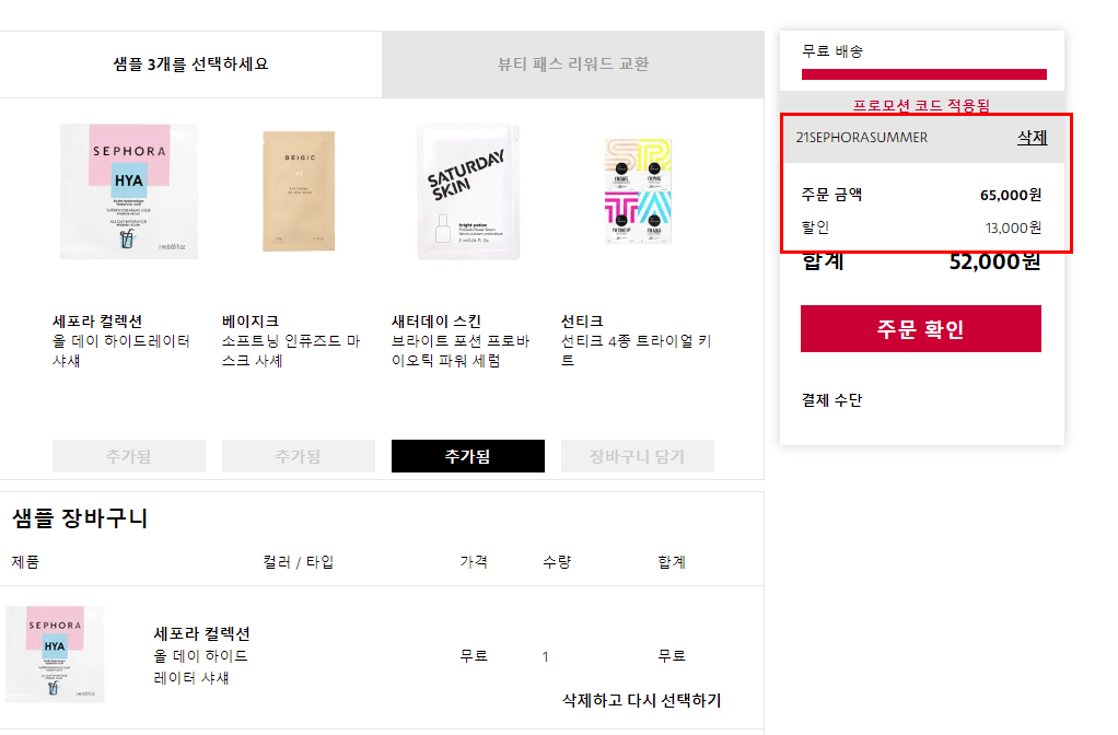 2. 할인코드: 21SEPHORASUMMER