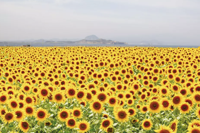 6월부터 9월까지 가파도에는 해바라기 밭이 가꾸어집니다. 탁 트인 시야를 자랑하는 평평한 지형이라 샛노랗게 활짝 핀 해바라기, 진한 쪽 빛 바다와 하늘이 한눈에 들어오는 풍경은 다른 곳에서 보기 힘든 광경입니다.