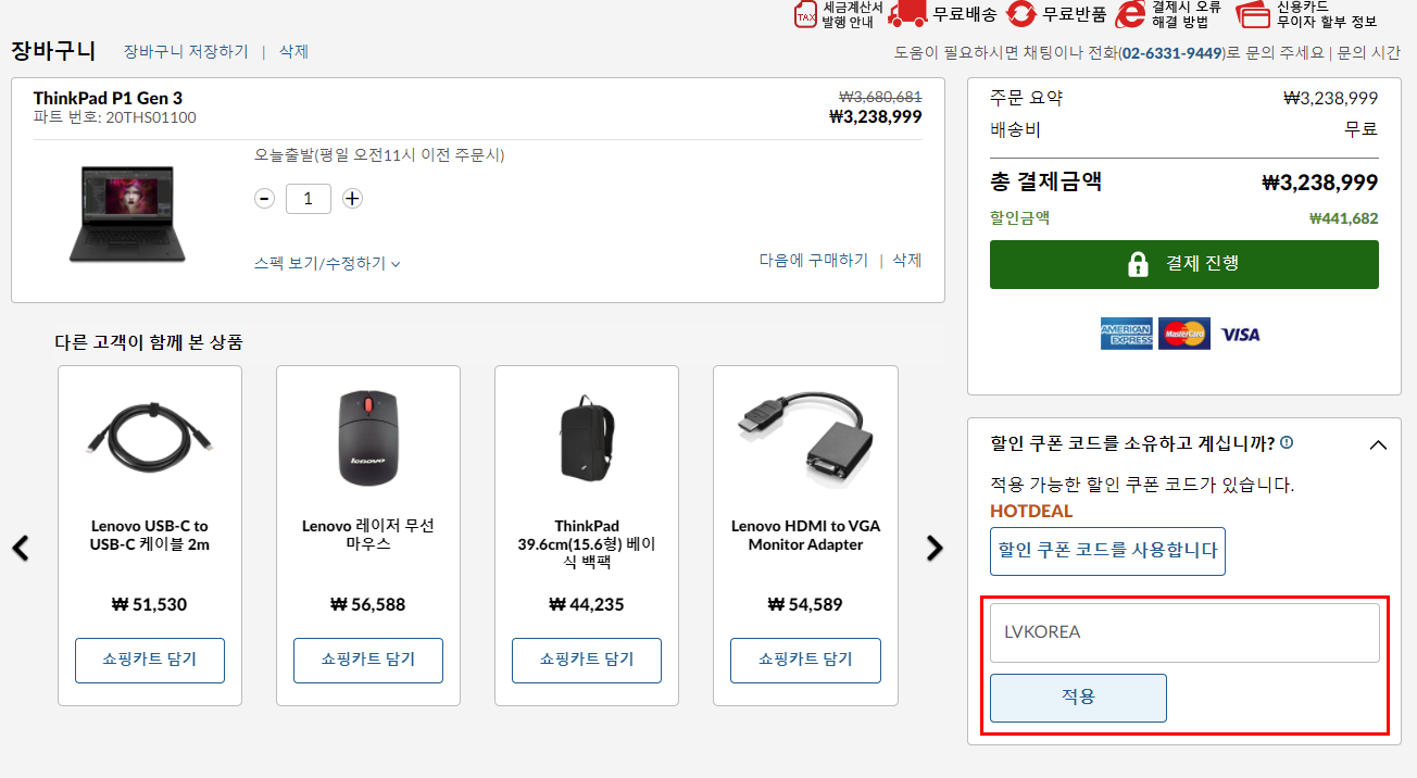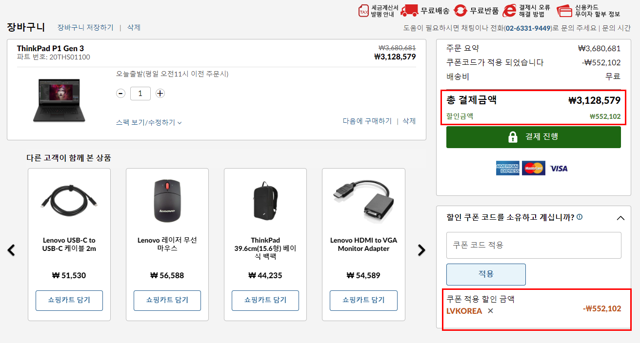 레노버 온라인 스토어에서 구매하실 경우 할인코드 : LVKOREA